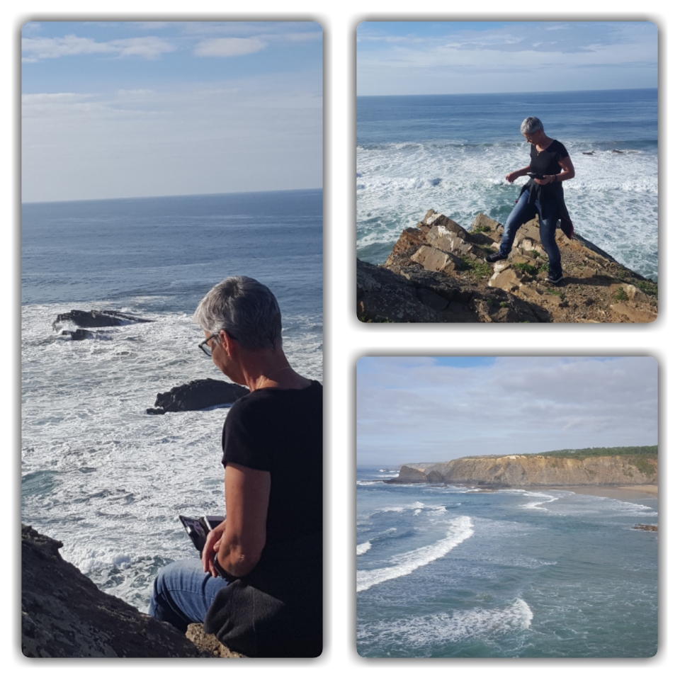 Ett stopp på vägen skedde vid Odeceixe, en liten by nära kusten. Strax utanför själva byn leder smala vägar upp på höga klippor som stupar brant ner i havet. Det märks att vi fortfarande är på den västra kusten, Barlavento (vindsidan). Atlantens vågor piskar mot klippformationerna och bildar vattenkonst som ständigt är i förändring. Vi utmanade ödet och tog oss så långt det bara gick ut på en hög klippa. Men det var det värt, trots lite svindelkänsla. Det gäller att veta var man sätter fötterna när man ska ta selfies.