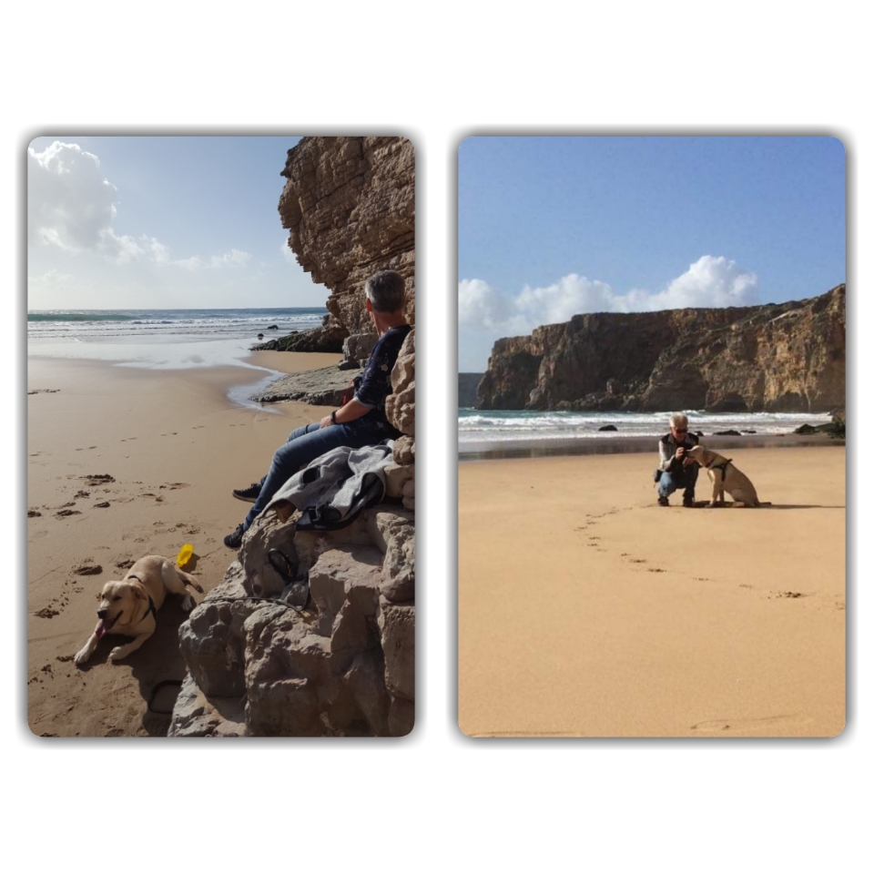 På tillbakavägen tog vi oss ner till Praia do Beliche. Till skillnad från de starka vindarna ute vid fyren fick vi här en lugn stund med värmande sol i skydd av de höga klipporna.
