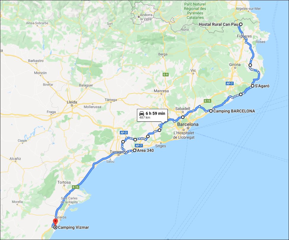 Vi for vidare ner mot havet och till ställplatsen Area 340 (mer info) i Road de Bara (mer info), som var lite mer civiliserat. Orten är en typisk semesterplats för Barcelonabor som har har sitt sommarställe där. Det kan vi förstå, att komma hit till lugnet vid havet och dess långa stränder måste vara en välbehövlig återhämtning från det pulserande, aktiva storstadslivet.