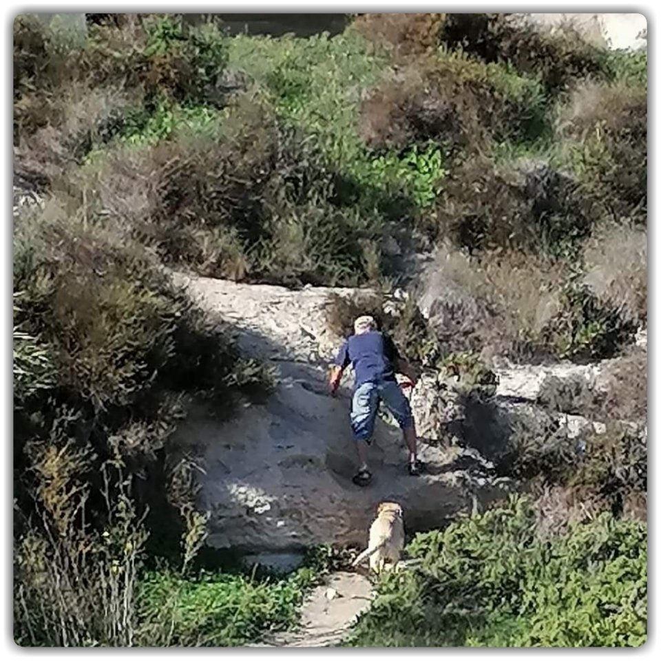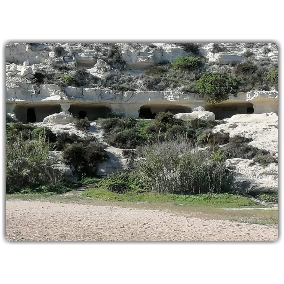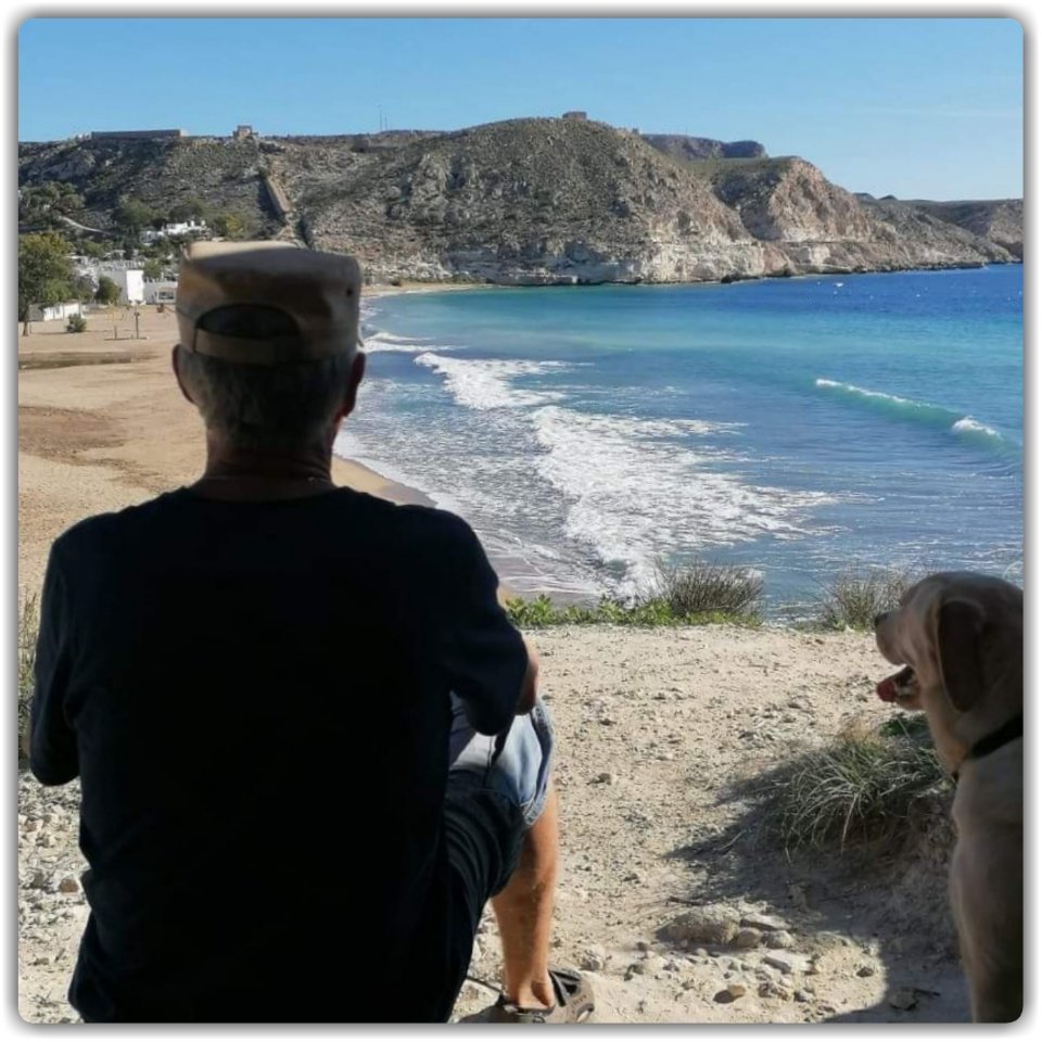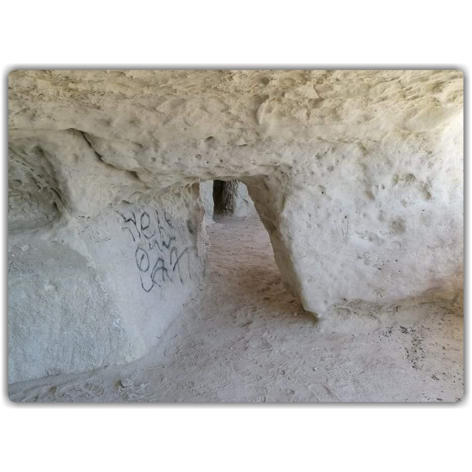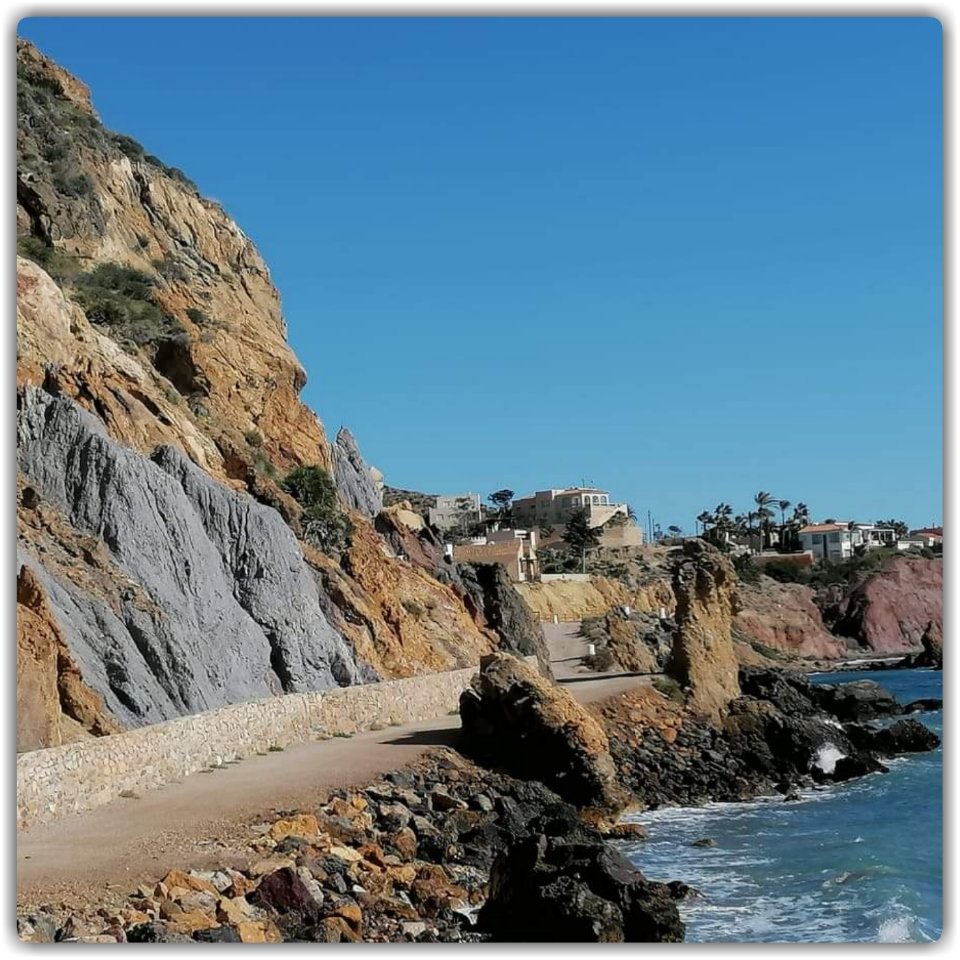 Efter 7 dagar på ett och samma ställe, rekord för oss, packade vi ihop och drog vidare. Vi körde småvägar utmed kusten och hamnade efter ca 18 mil på en ställplats i Agua Marga, (mer info) där vi visste att Nina och Calle fanns. Platsen var verkligen en kontrast till campingen i Bolnuevo. Folktomt i byn och det mesta igenbommat. Men nere på beachen såg vi en rad med klippgrottor som gjorde oss nyfikna. Så vi tog oss upp och undersökte dem närmare. Kanske de hade använts som bostad långt tillbaka i tiden. Osökt kom vi att tänka på familjen Flinta, kanske hade de en semesterlägenhet här!