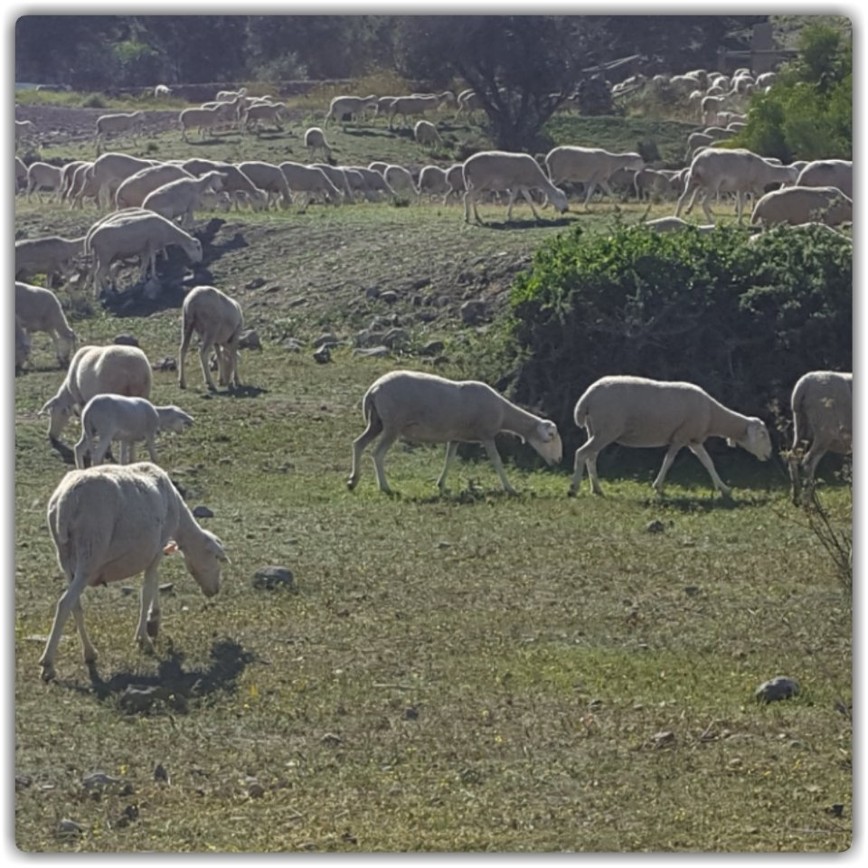 Vi har funderat över varför vi sett väldigt lite boskap utmed vår resväg. Men på vår väg ner till havet mötte vi några får som tittade misstänksamt på oss.