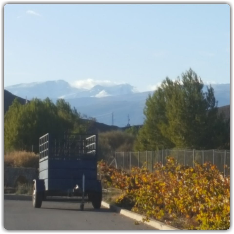 Vi lämnade vilda-västernmiljön och området kring San Jose och drog väster ut mot kallare klimat. Vår nästa anhalt var nämligen Bodega Fuente Victoria, (mer info) som ligger ca 900 möh. på den södra sidan av Sierra Nevada. Från vingården kunde vi se de snöklädda topparna.