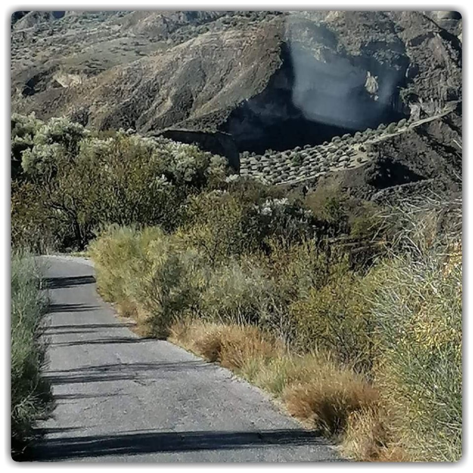Om vägen upp till Guadix var på hög höjd och bitvis hisnande så var det ingenting mot den väg vi nu åkte, väg GR 3107. Hade vi känt till hur vägen var så hade vi troligtvis varit smartare och valt den snabba, väg A92. Men nu gjorde vi inte det, så smalt, slingrande med höga backar uppför och nerför, djupa raviner på båda sidorna och inga skyddsräcken.