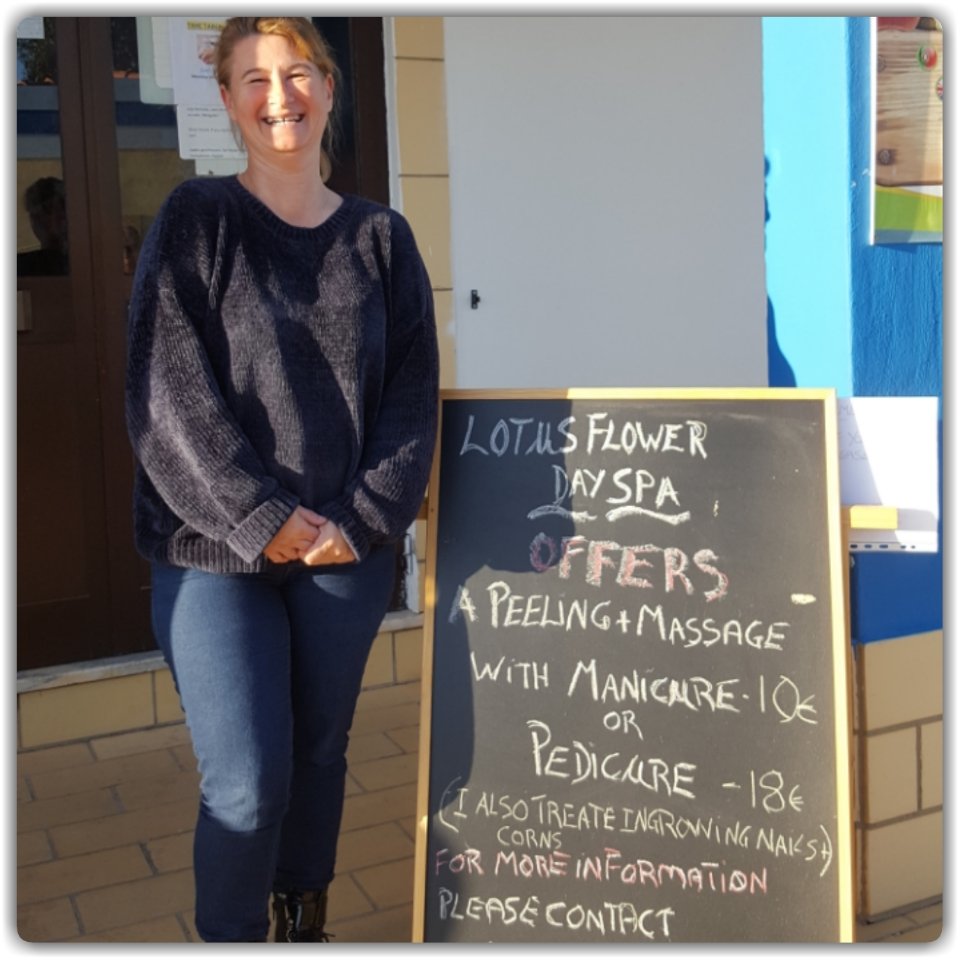 Fatima tar väl hand om dig och erbjuder manicure, pedicure, massage m.m. till rimliga priser. Fatima är engelsk-talande, utbildad inom sitt yrke och lätt att få kontakt med. För Evas del kostade det 28 E att få fina händer och fötter. Mycket valuta för pengarna då behandlingen tog två timmar.