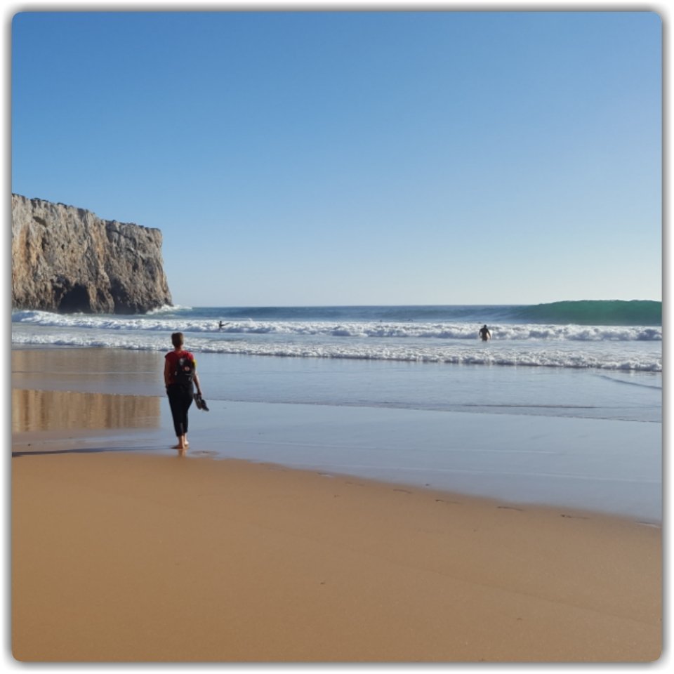 Vi tog oss till Praia de Beliche som ligger skyddad strax innan Cabo de Sao Vicente. Med sina klippformationer och gyllene sand är detta nog en av de vackraste stränder vi varit på. Det var värt alla de trappsteg vi var tvungna att gå för att ta oss dit.