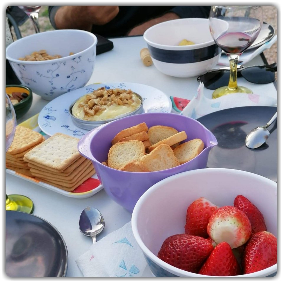 Lite fest fick det bli sista kvällen innan vi sa hej då till Alvor och våra trevliga vänner Mary Ann och Kim.