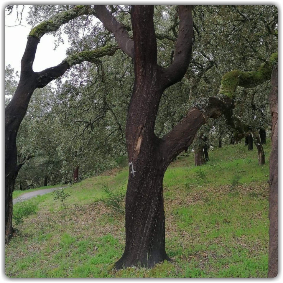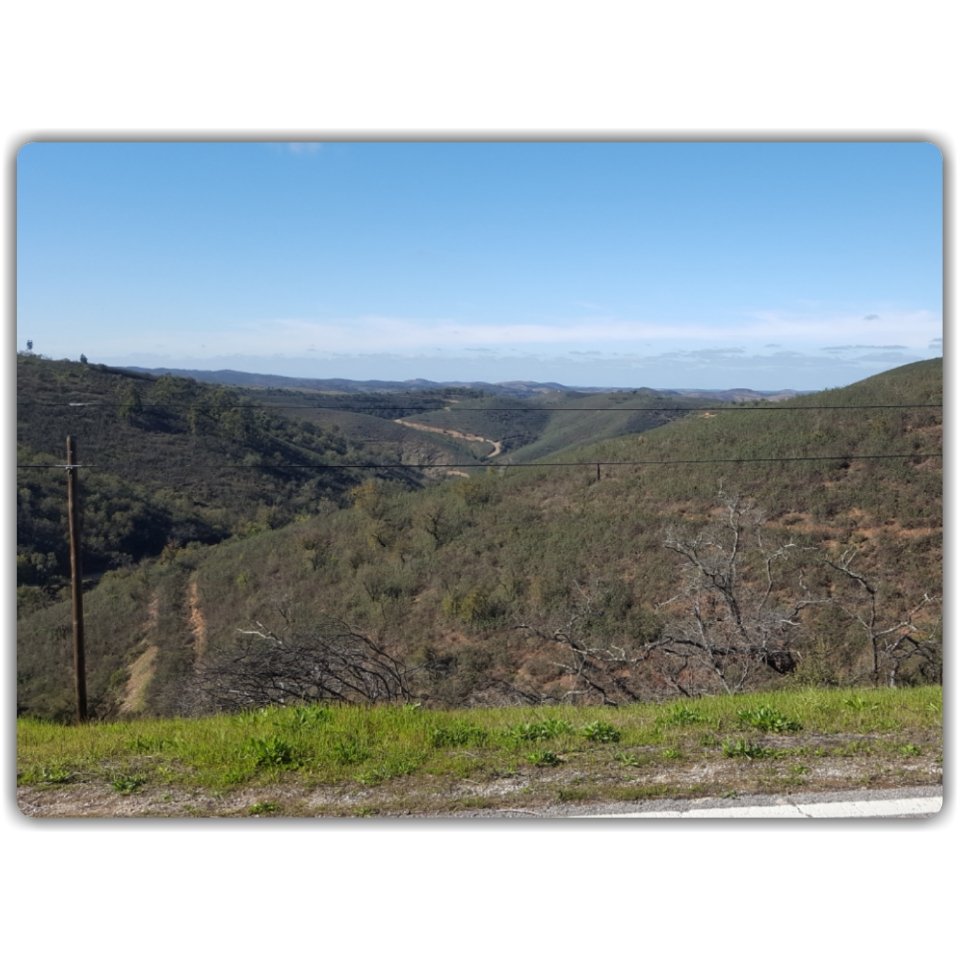 Från Alferce fortsatte vi öster ut, till största delen N124. Gillar man skog, skog och ännu mer skog samt serpentinvägar upp och ner så ska man absolut välja denna väg. Det är storslagen natur, djupa dalar och höga höjder som täcks av korkek, eucalyptus och stora planteringar av pinjeträd. Vi körde genom några byar, annars var det inte mycket bebyggelse, m.a.o. var det långt till grannarna. Färden går högt upp, mellan 300 och 400 m.ö.h. Efter fem mil var vi ganska nöjda med all skog men då hade vi ytterligare ca 7 mil kvar tills vi nådde vårt mål för dagen, Pereiro, (mer info).