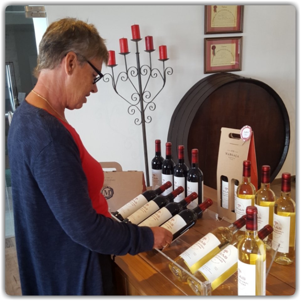 Att vi befinner oss mitt i Alentejo’s vindistrikt förstår vi av alla vinodlingar vi ser utmed vägen. Det fick bli ett stopp på Vinhos Margaça. Svårt att använda ordet ”vingård” eftersom att ”Margaça” ligger mitt inne i den lilla byn Pias.