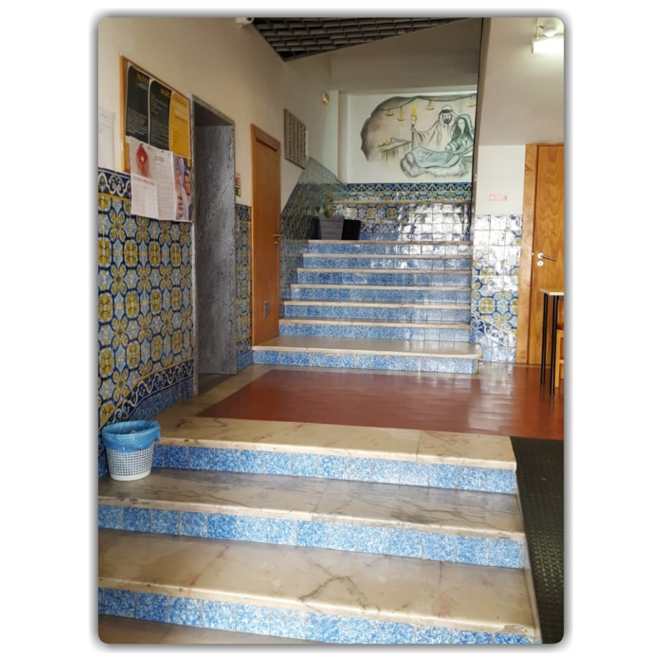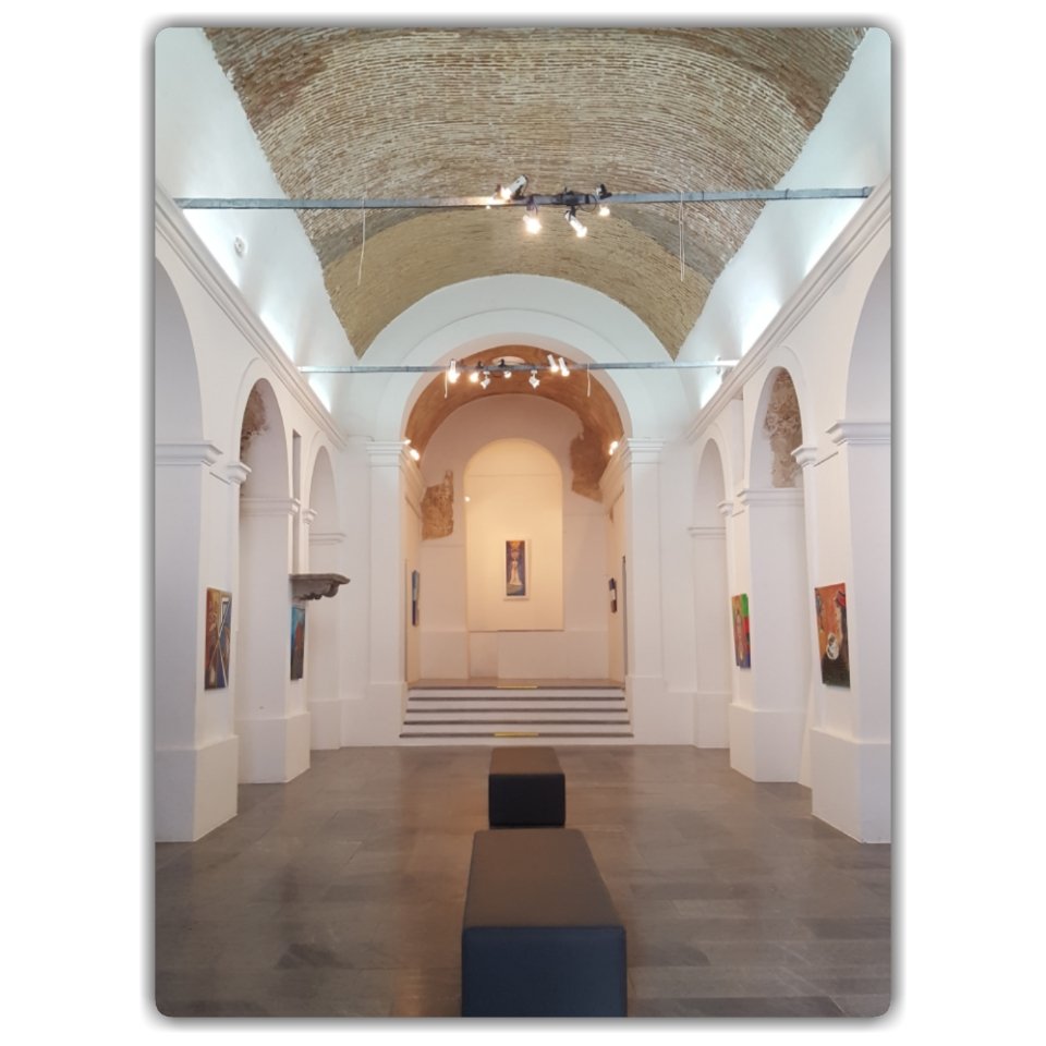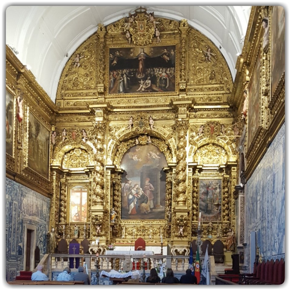 Även om området inom borgen är väldigt begränsat, finns här flera kyrkor. Många av de kyrkor vi tittat in i har varit mycket utsmyckade (kyrkan har mycket pengar, även här). Här hittar vi en som är minst lika vacker med sin konstutställning mot vitkalkade väggar och det välvda taket.