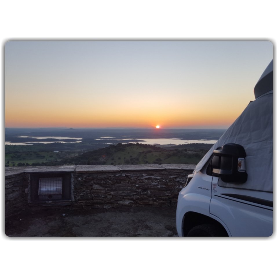 På tredje försöket hittade vi rätt infart till husbilsparkeringen, (mer info). Men trägen vinner och vi hade en enormt vacker utsikt morgonen efteråt när solen var på väg upp.