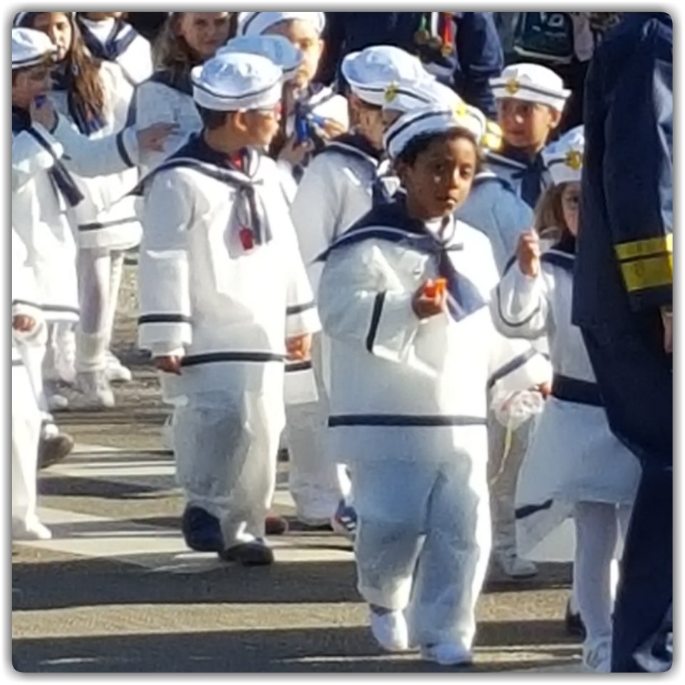 I vår vandring genom staden stötte vi på barn och skolelever som deltog i en karneval.