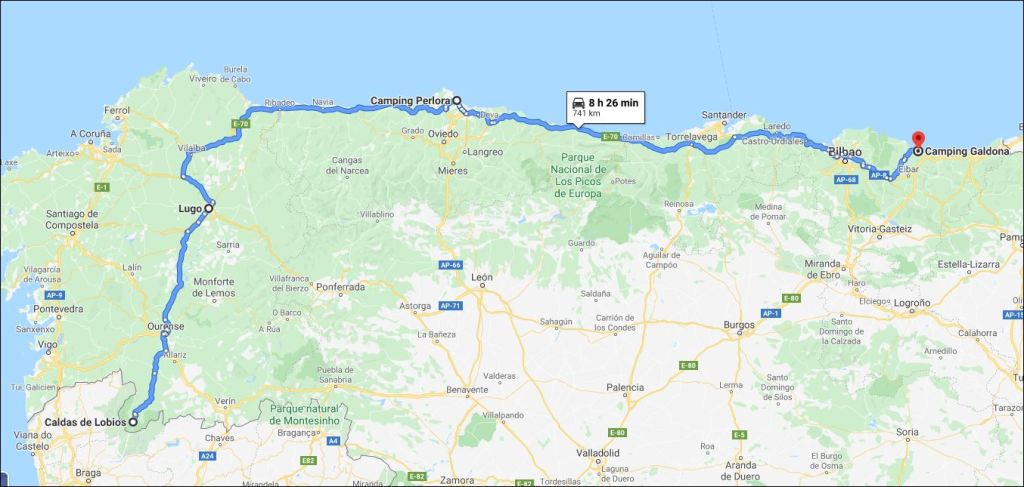 I kväll står vi några mil väster om San Sebastian, Camping Galdona, och kommer imorgon att ta oss in i Frankrike.