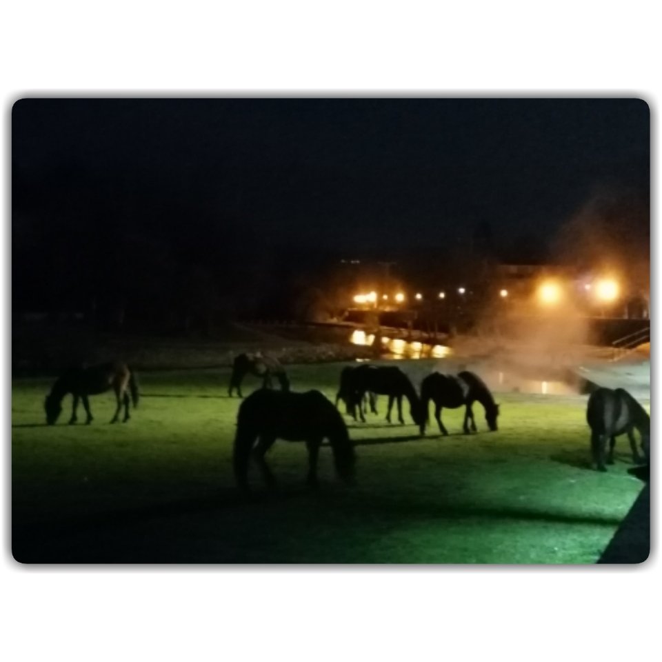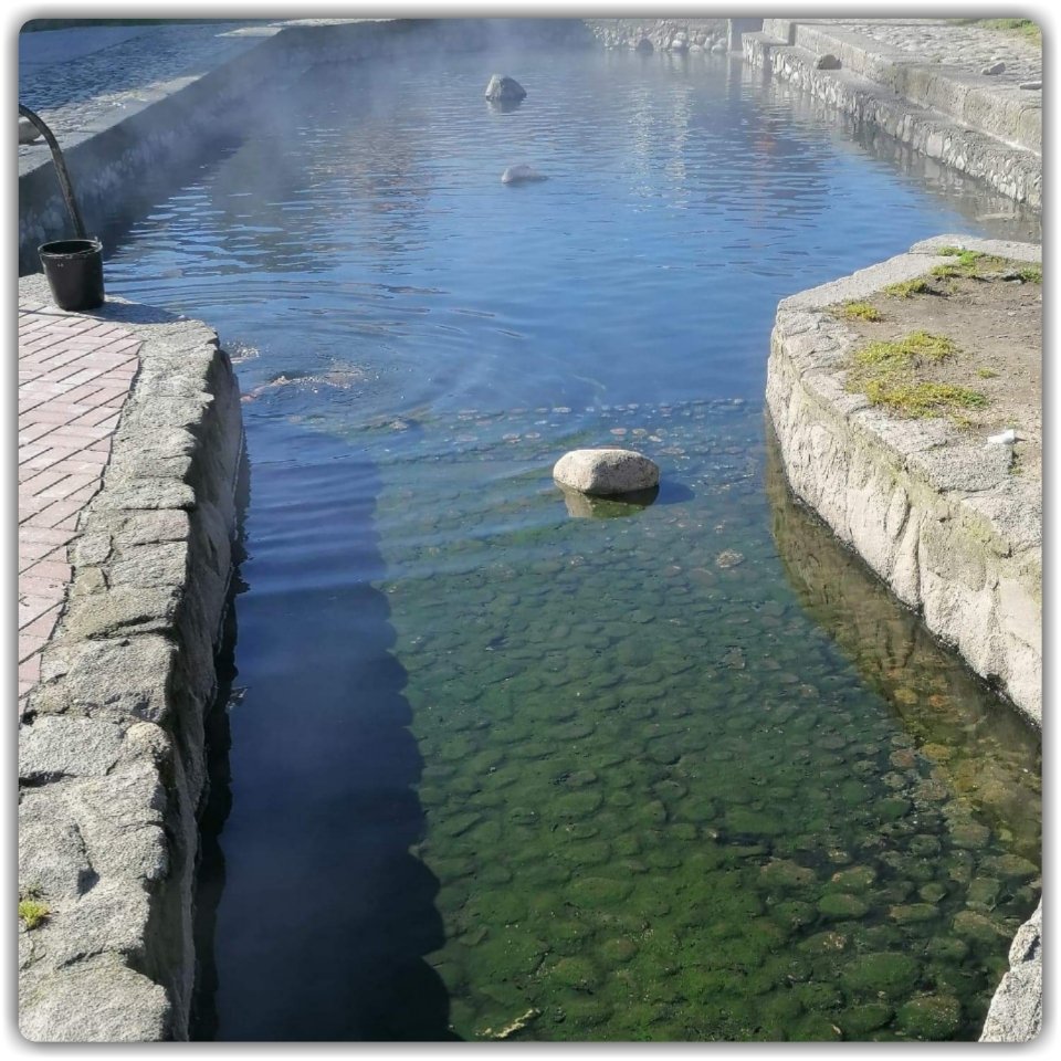 Ovanför vattnet steg ångan uppåt vilket var väldigt effektfullt, framför allt vid midnatt när vi badade under en stjärnklar himmel. Tolv hästar gick bredvid och betade lugnt och fridfullt.