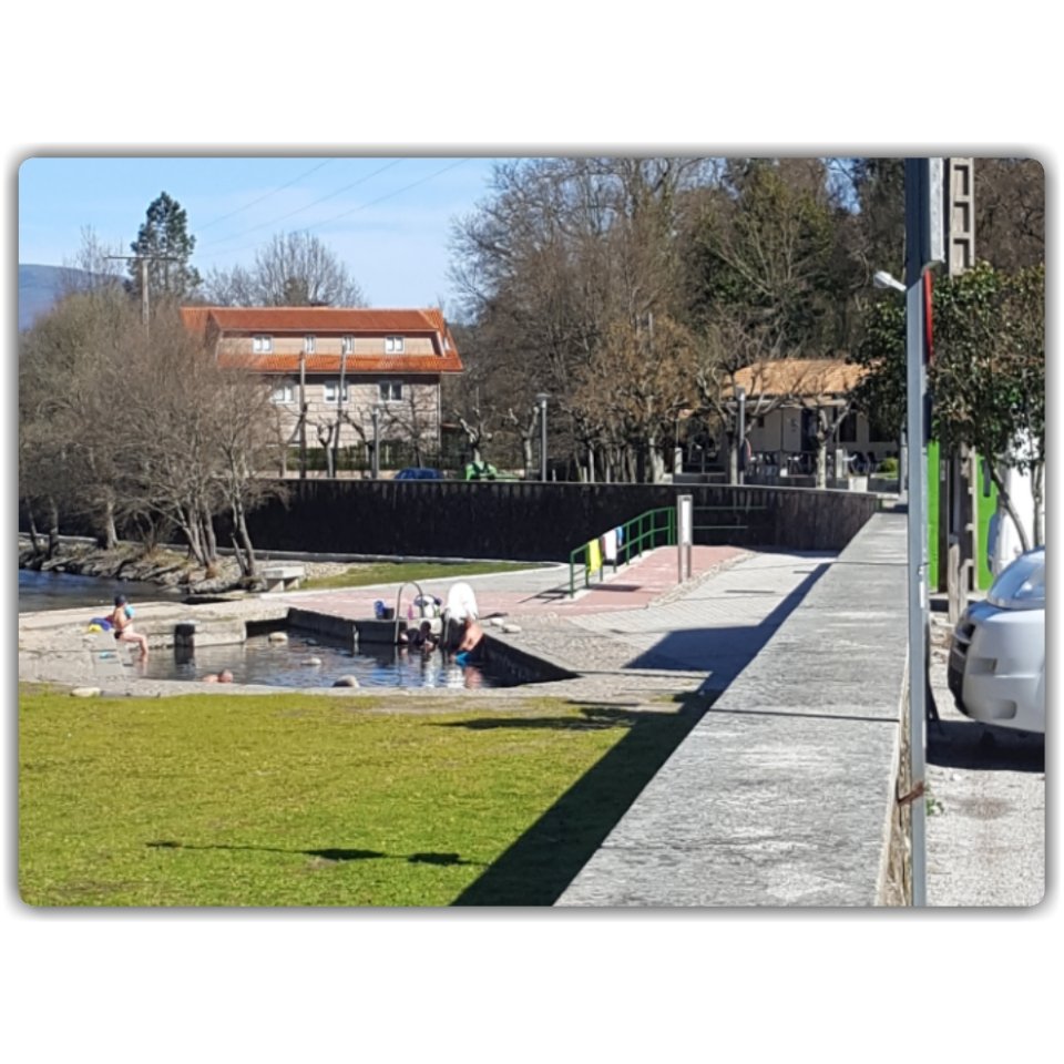 När vi var i Alvor fick vi tips om heta källor i området nordost om Braga. Vi hamnade i Caldas de Lobios nära Bubaces på spanska sidan och källvattnet var verkligen hett. När vi doppar oss i havet får kroppen oftast vänja sig succesivt vid det kalla vattnet. Här var det tvärtom, det sved ordentligt i skinnet av det heta vattnet. Tyvärr så fick vi inte klarhet i hur varmt vattnet var, någon nämnde mer än 50°.