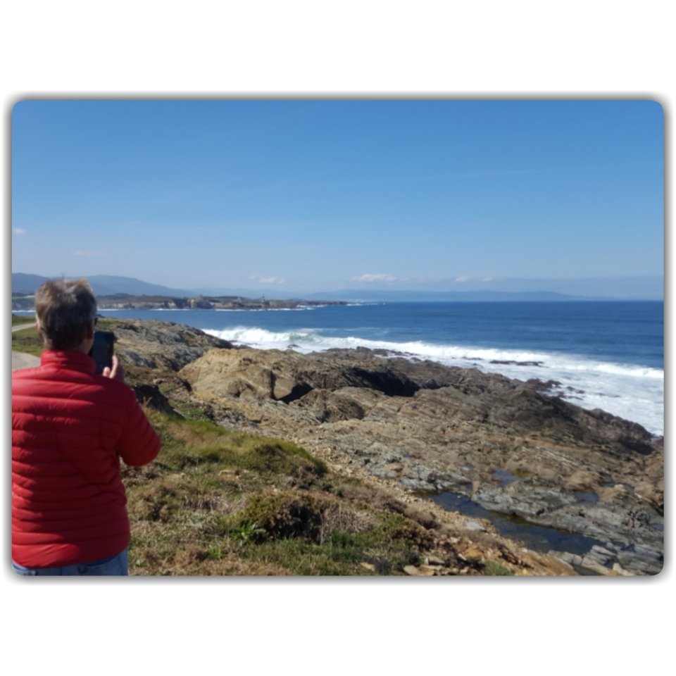 Från Lugo fortsatte vår färd upp mot Atlantkusten. När vi passerade Ribadeo och bron över Ria de Ribadeo såg vi en fyr som låg vackert ute på en udde med vitt skum från vågornas brytning. Vi svängde av väg A8 och tog oss ut till fyren” Punta de la Cruz”.