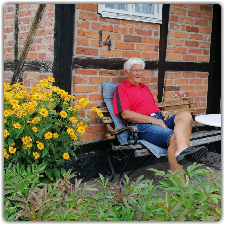 Efter en stunds pratande ute vid gatan, bjöd han in oss för att visa sin vackra trädgård. Här kan man prata om ”gröna fingrar” och en spännande livshistoria.