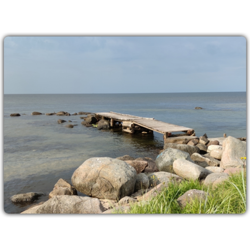 Här finns en helt nybyggd träbrygga som leder ut till en skyddad båthamn. Men den gamla bryggan ser nog så vacker ut.
