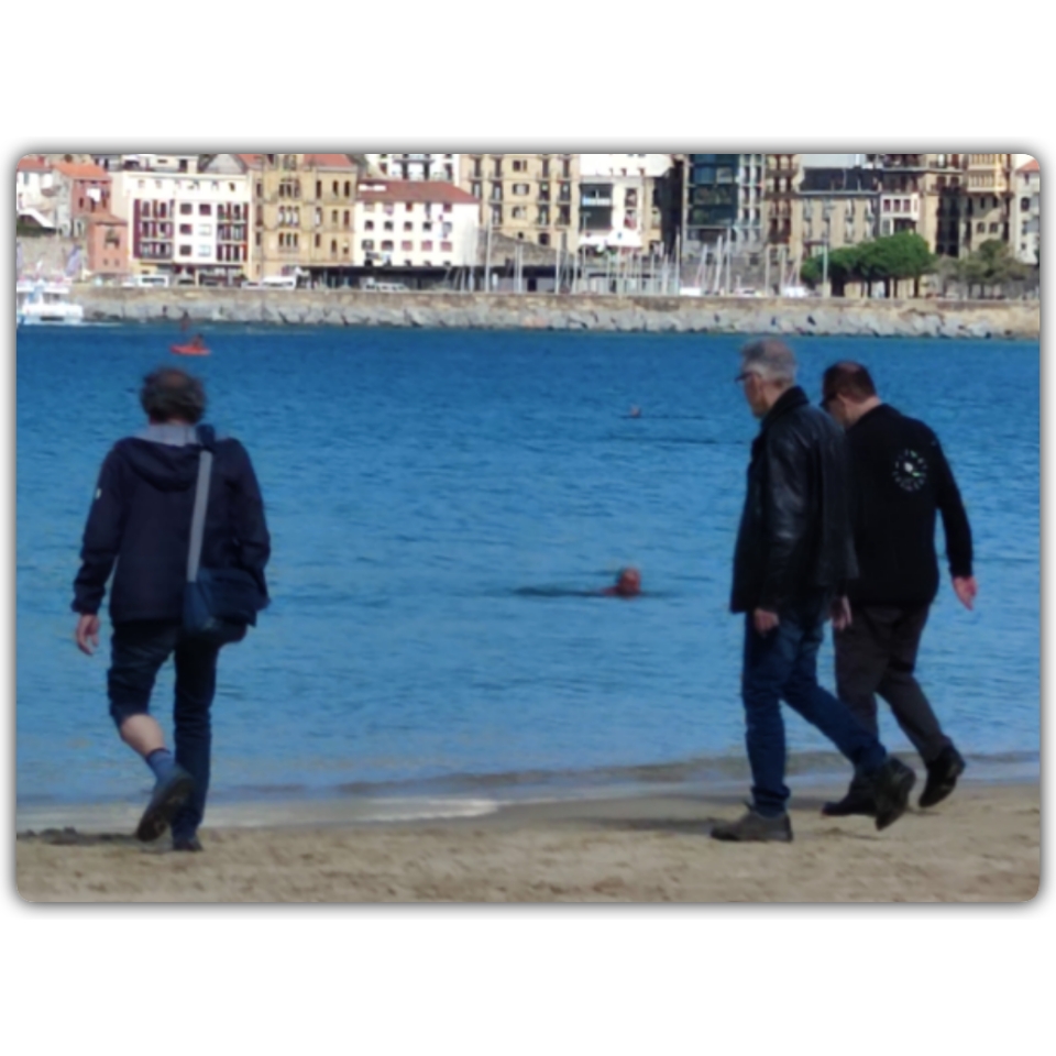 Precis nu slappar vi på stranden i centrala San Sebastián. Det är ca 23 ° varmt och påminner oss om en sommardag därhemma. Medan vi ”hyvlar” av oss mer och mer kläder ju längre söder ut vi kommer, desto mer kläder drar lokalbefolkningen på sig.