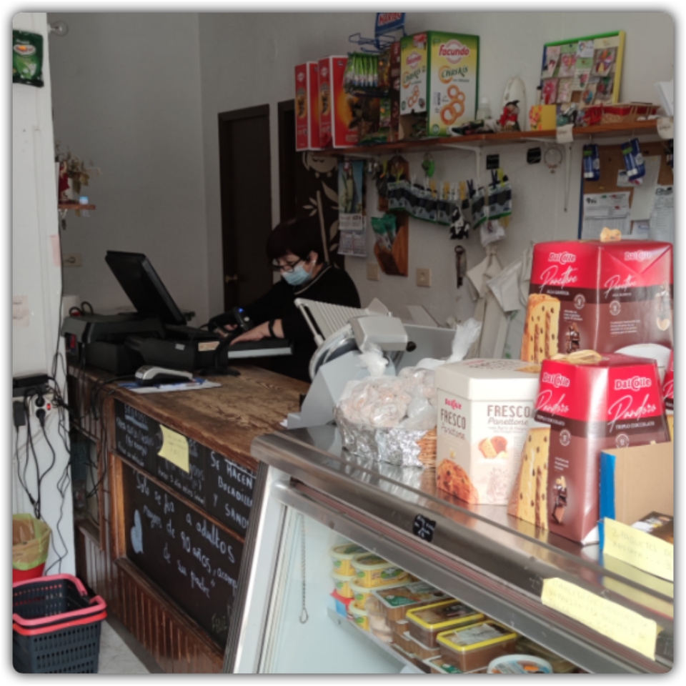 En liten butik, en bar där man kan köpa dricka och toast samt en restaurang. Det stora hotellet igenbommat, just nu. Inte många kan bo här.