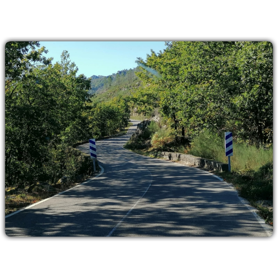 Vägen mot Geres på portugisiska sidan är slingrande och med några 360 graders kurvor, men ändå vacker och värd att köra. Det tog oss nästan en timma att ta oss de 25 km. Inte blev vägen mycket bättre när vi satte in navigator på Peso de Regua vid Douro-floden. Smalt, krokigt och högt upp, rekordet var ca 850 m ö. h.