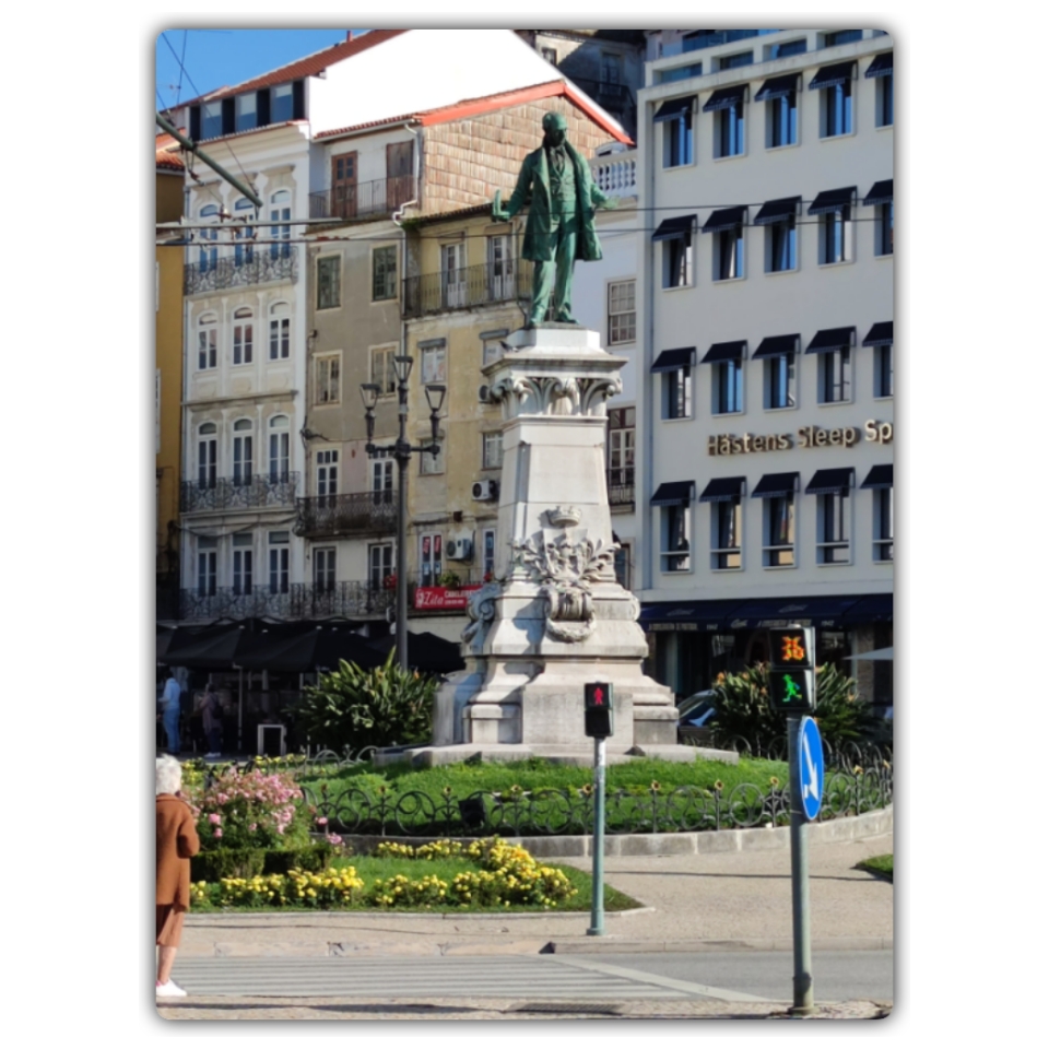 Coimbra är en gammal stad och ligger vid floden Mondego.Staden var under en period på 1100-talet huvudstad i Portugal, men spelar fortfarande en viktig roll. Den gamla delen av stan omgärdades av en mur, rester finns fortfarande kvar. Det som egentligen lockade oss hit var universitetet som är ett av Europas äldsta universitet. Det grundades på 1200-talet och har idag 8 fakulteter och ca 20000 studenter från hela världen. Denna stora grupp sätter sin prägel på stadslivet. Förutom det anrika universitetet så finns det många andra historiska byggnader att se. Därför blev det många timmars vistelse i stan.