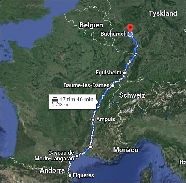 Vår färd gick nu vidare utmed floden Rhône på dess västra sida. Mängder av vinodlingar kantade vägen. Dessutom mängder av småbyar med vilket följer väldigt många rondeller. De 30 milen vi körde tog oss 5 timmar.