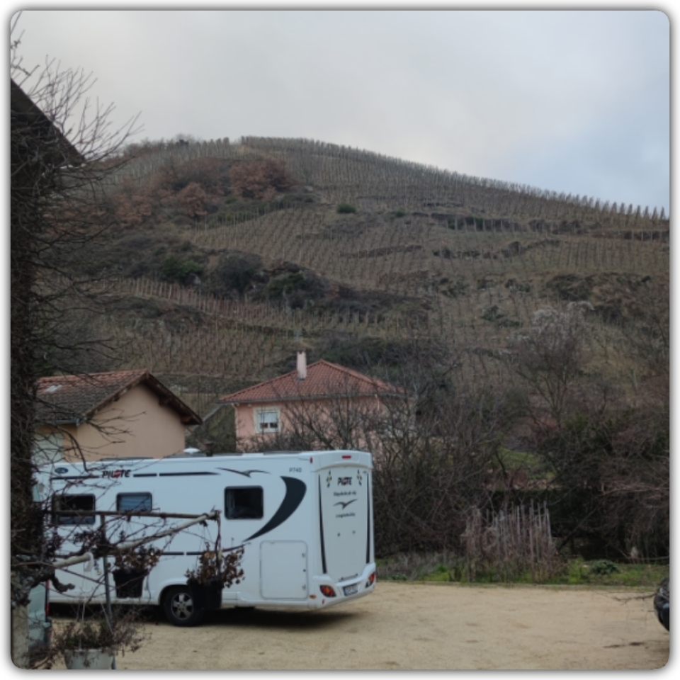 Det blev ännu en övernattning på en vingård, nu i den lilla byn Ampuis några mil söder om Lyon. Det fanns många att välja på i sista svängen.
