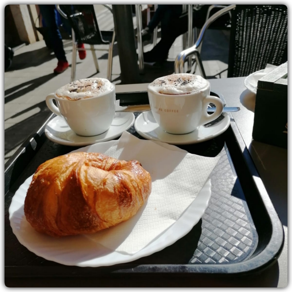 Vår rundvandring i Figueres krävde givetvis en cappuccino som vi avnjöt på ett litet utecafe i solskenet