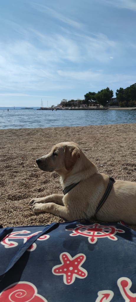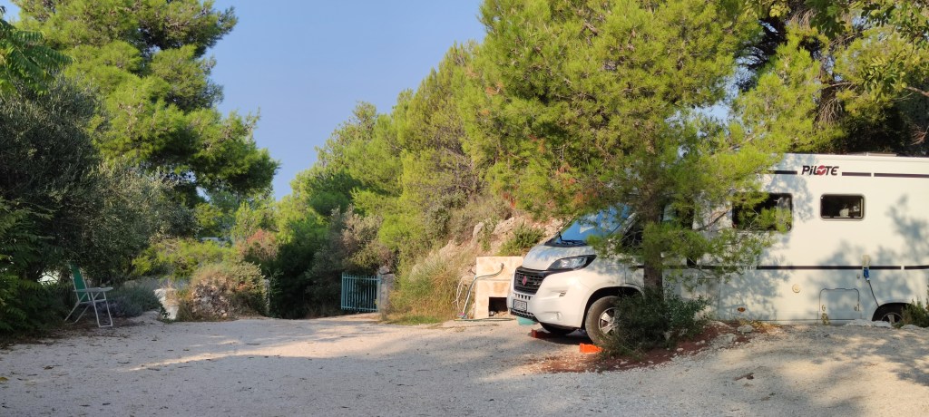 Nu har vi börjat röra på oss igen efter att ha legat stilla i elva dagar. Split Camping i Storbreč är en toppencamping för både människor och husdjur.