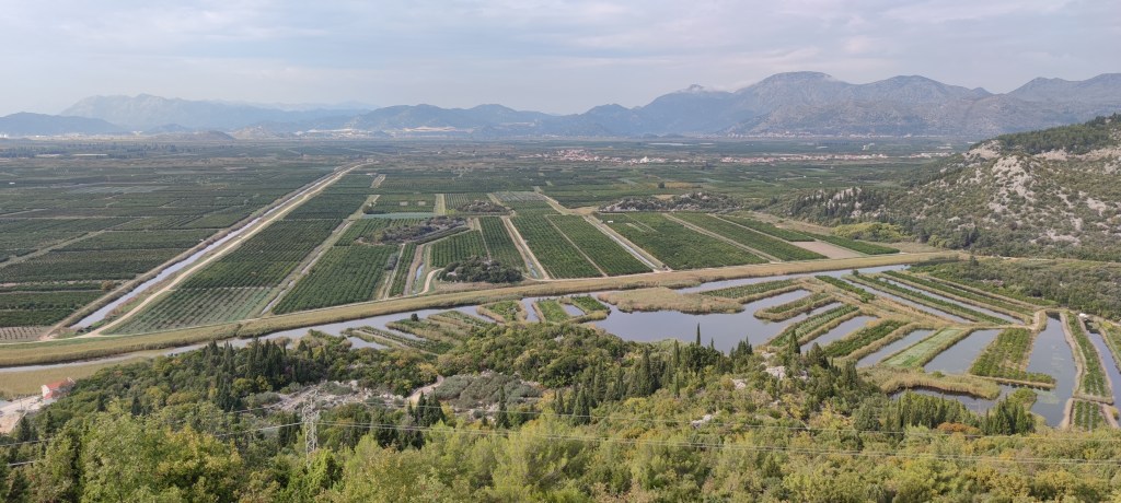 Utsikten är inget fel på, men allt har en baksida, så även här. Cirka 25 m bakom oss ligger väg A8 med ganska mycket trafik. Här stannar vi ändå för natten, i morgon tar vi oss an Dubrovnik.