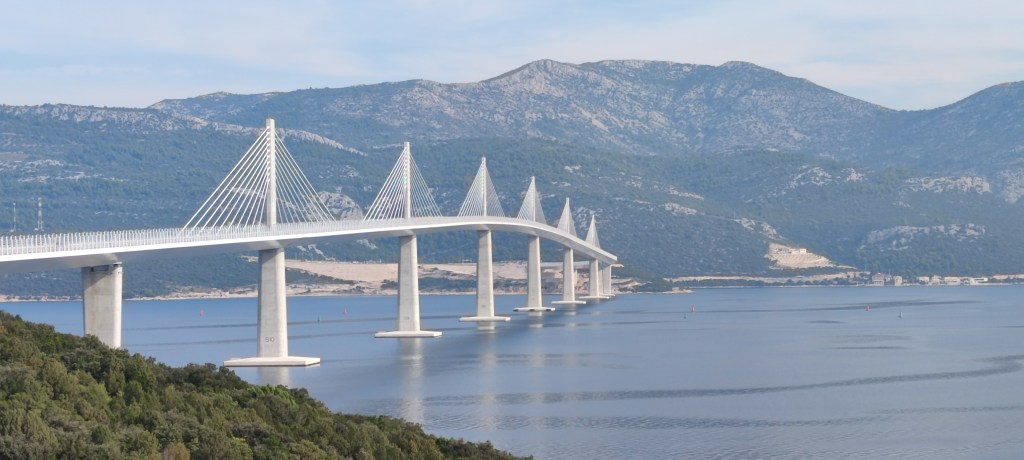 Bron invigdes så sent som juli 2022, är 2404 meter lång och gör det enklare att ta sig mot Dubrovnik i den södra delen av landet. Tidigare var man tvungen att passera en smal landremsa som tillhör Bosnien Hercegovina, vilket skapade långa köer och passkontroller.