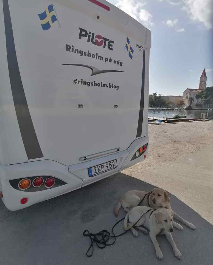 När vi drog iväg på den här resan visste vi inte hur det skulle funka med en 14 veckor gammal valp. Men det har visat sig fungera alldeles utmärkt. Givetvis har vi fått anpassa oss efter dem och deras behov, men även Doriz har anammat husbilslivet.