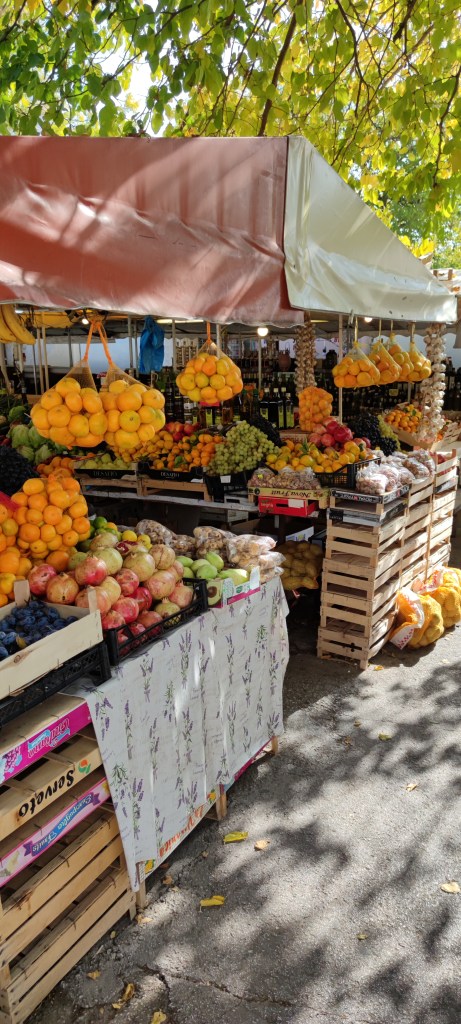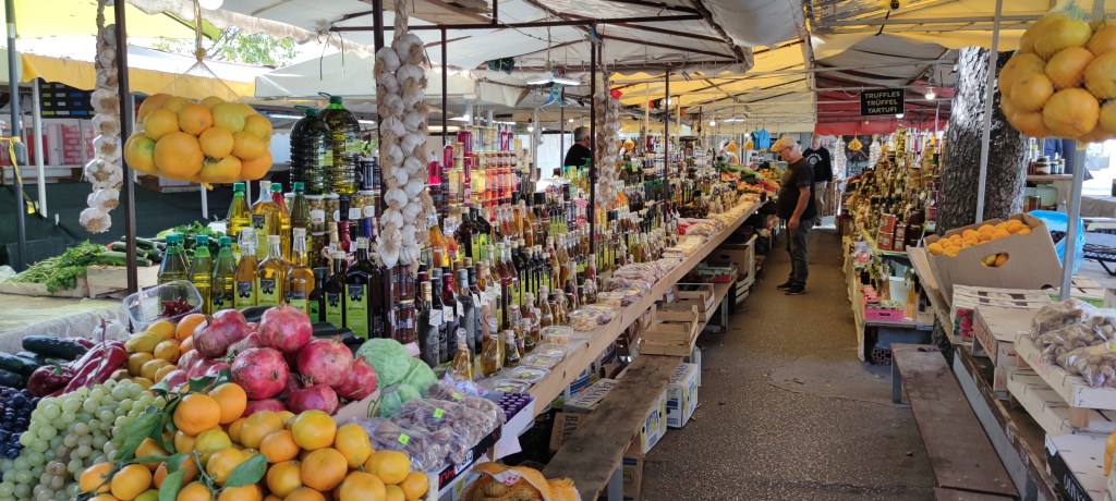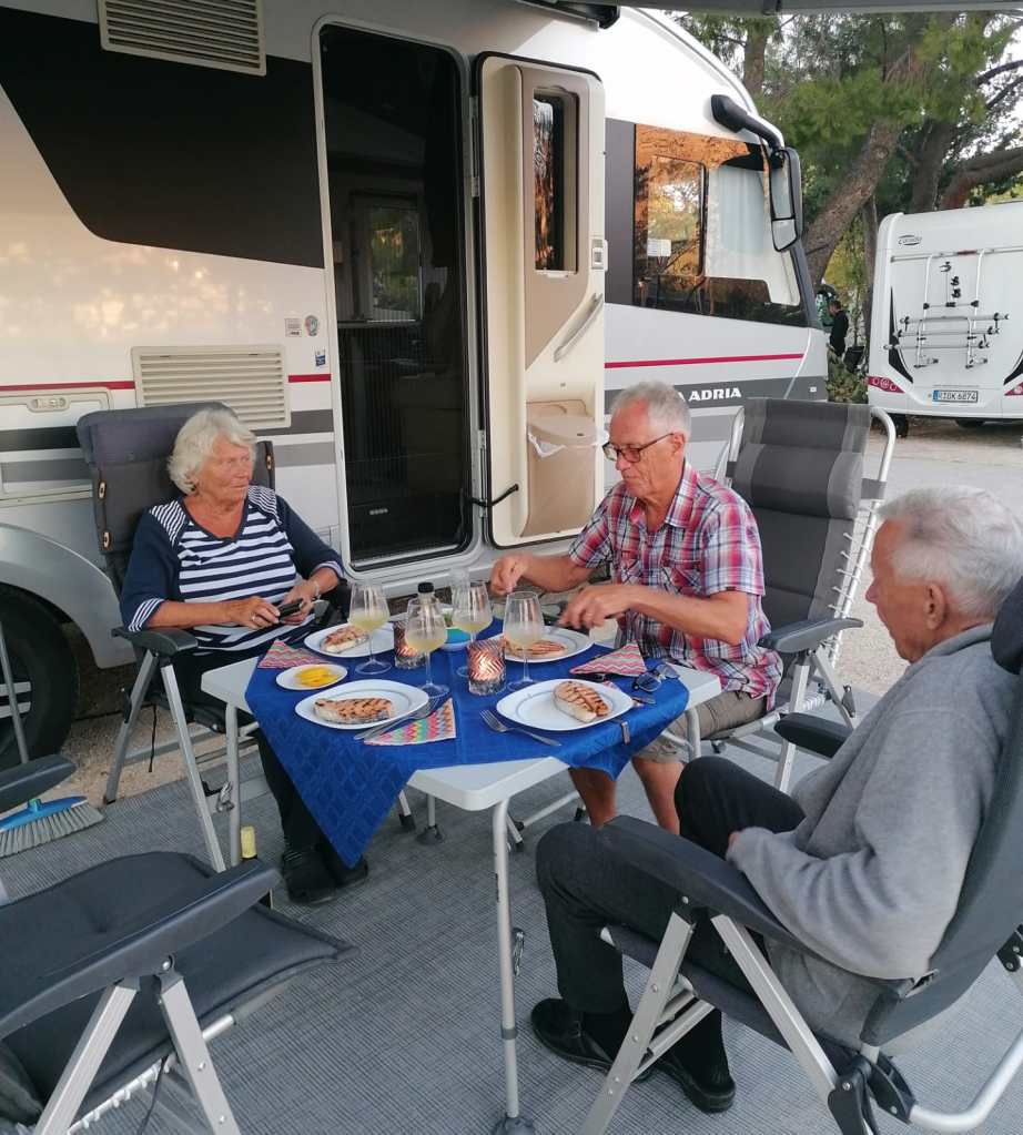 Vi tar det väldigt lugnt och försöker ta tillvara på allt det goda i livet. Till detta hör, förutom sol och bad, givetvis mat, dryck och trevligt umgänge. Varje dag går vi en promenad för att inhandla det vi behöver. Byn Stobreč är inte så stor men här finns det vi behöver. Direkt utanför campingen hittar vi frukt- och grönsakshandlaren, fiskaffären och icke att förglömma bageriet dit det alltid är kö.