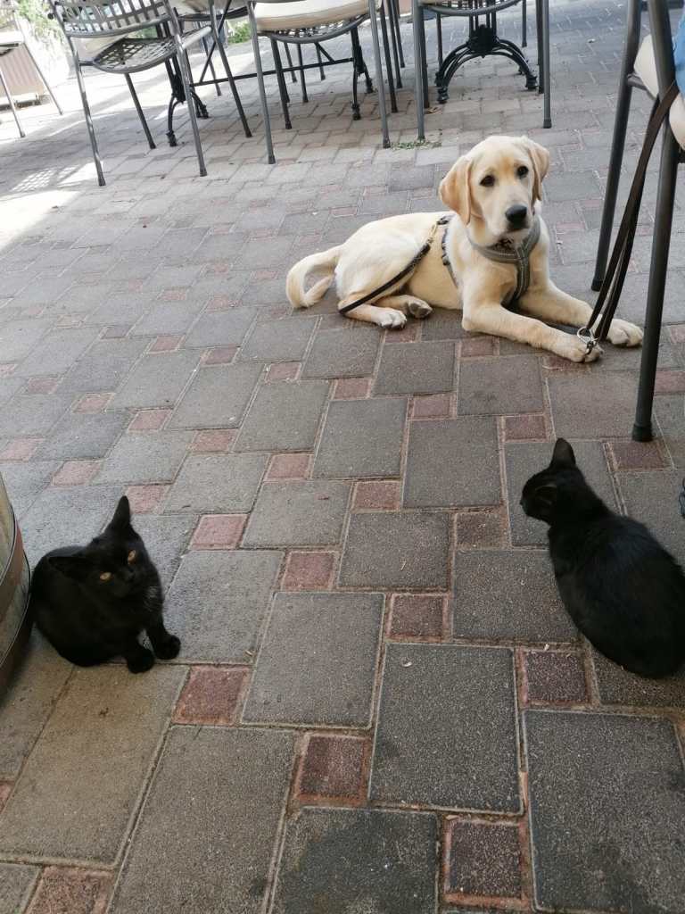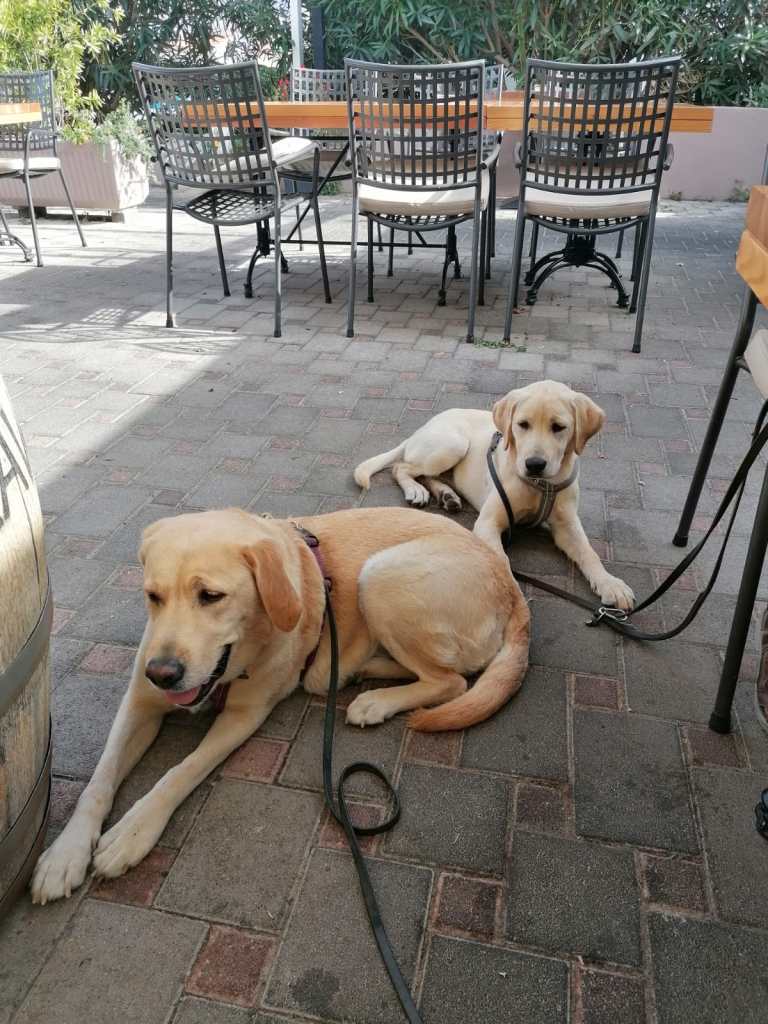 De väntar snällt utanför affären, håller sig lugna på restauranger även om det är många som rör sig runt om. Vill vi ha egentid så kan vi lämna dem i husbilen utan problem.