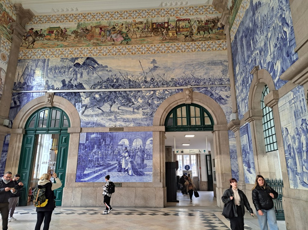 Ett måste den här gången var att se den berömda tågstationen São Bento. Väggarna är klädda med typiskt blå-vitt kakel, azulejo, och motiven är hämtade från historiska händelser och hur människor levde och arbetade.