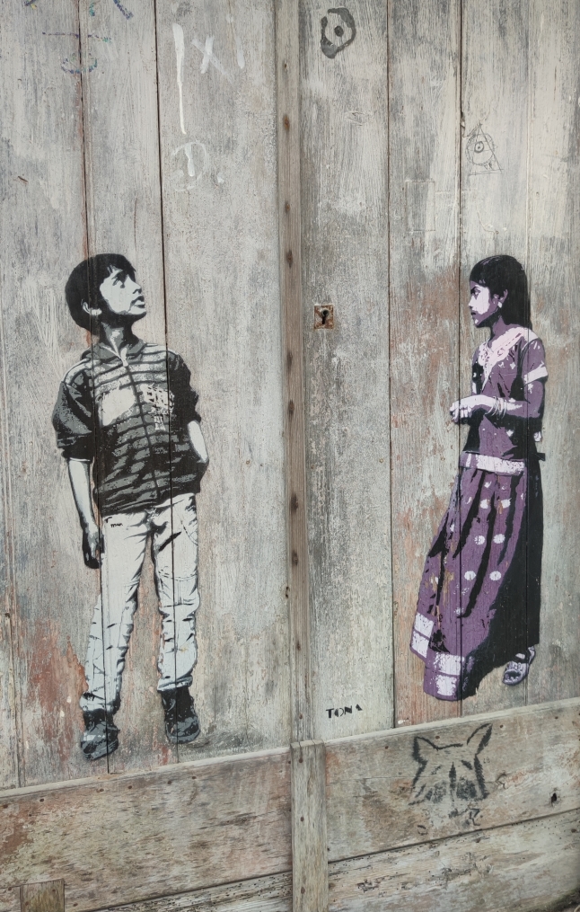 De målningar som fascinerade oss mest var målningarna av den anonyme och världskände gatukonstnären TONA. Han kommer från Hamburg och reser världen runt och målar på förfallna fasader och dörrar. (Tack Mary Ann för tipset).