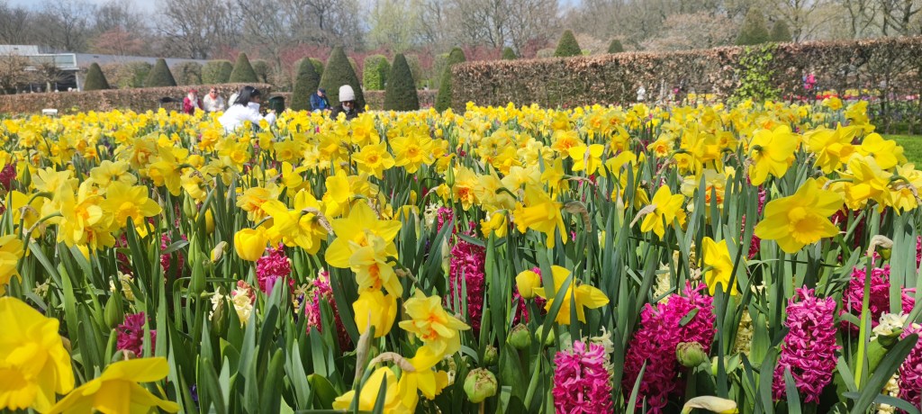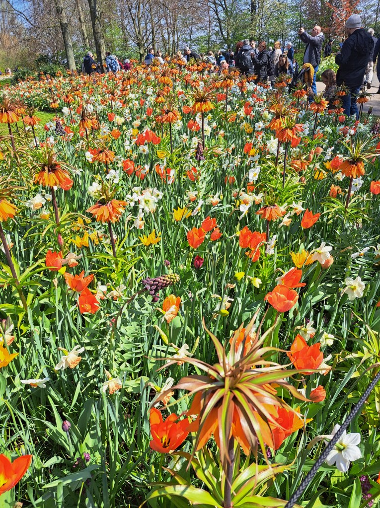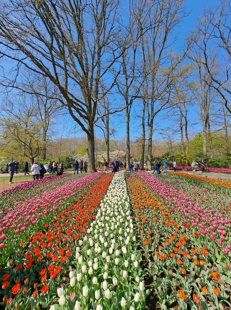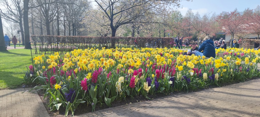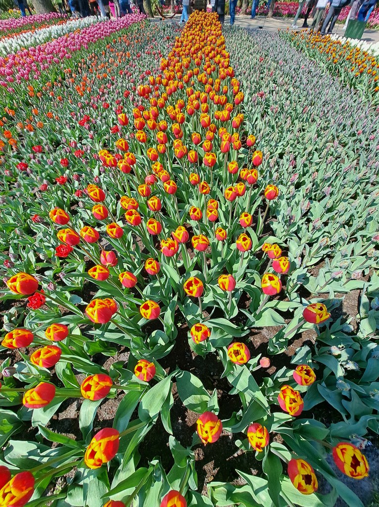 Som tur var hade vi fint väder med strålande solsken, vilket gjorde upplevelsen ännu större. Sju miljoner lökar tar sin plats, som ni säkert förstår, så är det en stor park. Allt är noga planerat i form och färg och det krävs många trädgårdsarbetare som jobbar året runt för att parken ska vara öppen två och en halv månad. Mängder av besökare från alla världens hörn tar sig hit under just denna period.
