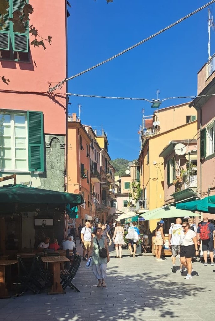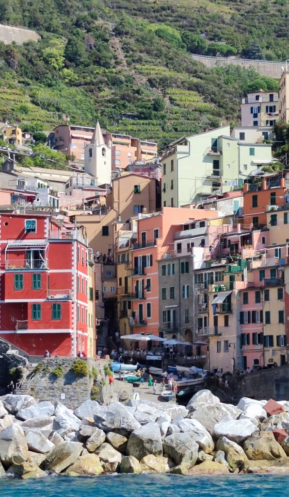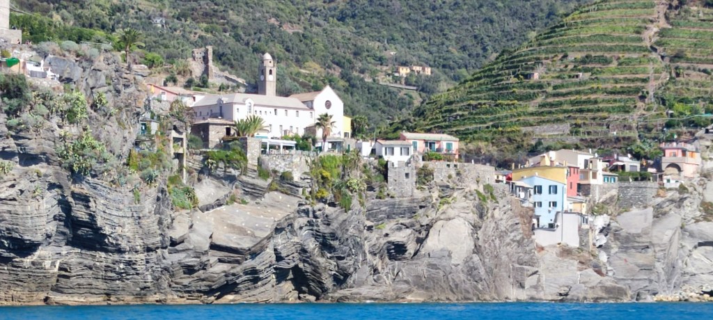 Efter tips från andra husbilsägare så följde vi rådet att från La Spezia ta båten till Monterosso som är den nordligaste byn (25 € p/p.) och tåget tillbaka (5 € p/p, hundarna åkte för halva priset).