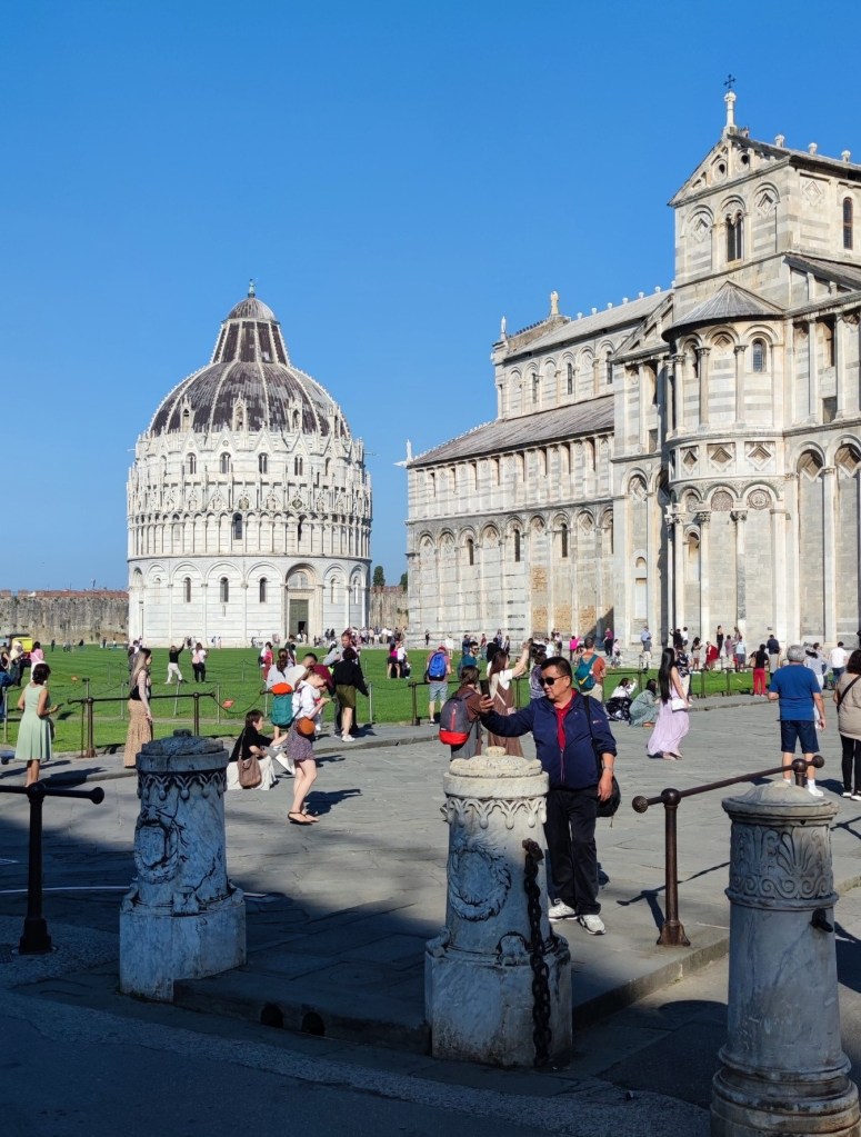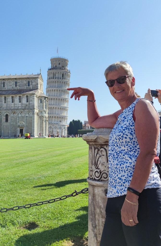Efter en god natts sömn drog vi vidare till nästa turistattraktion, Pisa. Att få se det lutande tornet i verkligheten var ett givet mål, och lutar gör det, det kan vi också härmed intyga!