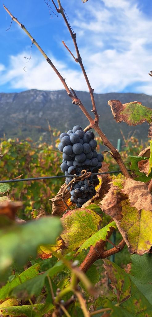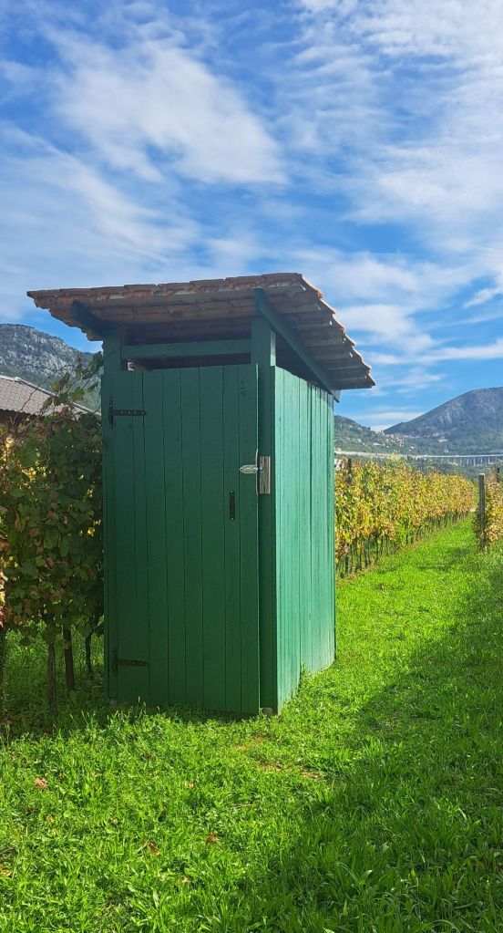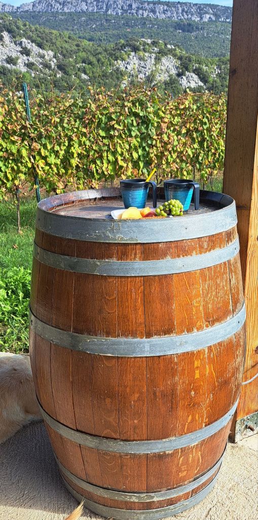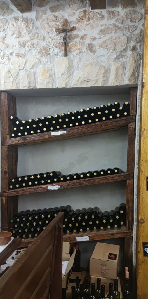 Efter denna prövning med mycket uppför, steniga stigar och sedan tillbaka samma väg, behövde vi något lugnande för att få ner pulsen. Vi bestämde oss därför att köra till en vingård i den lilla byn Vina. Vi har varit där tidigare så vi visste vad som väntade.