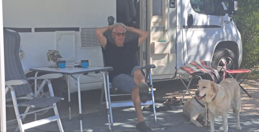 Från denna idyll har vi tagit oss tillbaka till kusten, passerat den vackra Pelješki-bron och står på Camping Lavanda i utkanten av Orebić. Efter en kväll och natt med regn, åska och ganska hård vind skiner åter solen.