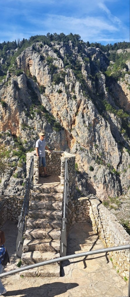Men några mil söder om Omiš övergav vi kusten och vek inåt landet med sikte mot den lilla staden Imotski. Tack och lov så finns en ca. 5 km lång tunnel genom Biokovobergen, så vi slapp en massa serpentinvägar. Vi hade nämligen läst och sett vackra bilder om två sjöar, en blå och en röd, och ville gärna se dessa i verkligheten.