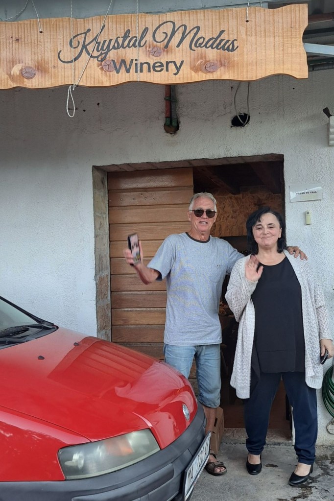 Väl framme på vingården Krystal Modus Winery blev vi varmt mottagna av Marica och inbjudna för vinprovning. All konversation skedde via translate och fungerade utmärkt.