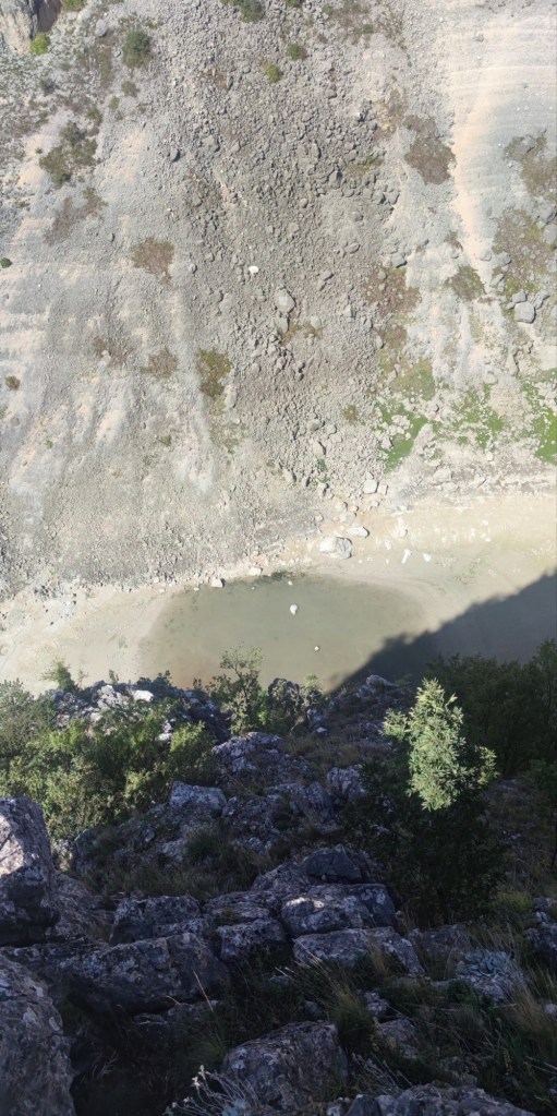 Den Blå sjön, Plavo eller Modrosjön har ett djup på 0 – 147 meter. Nu var det inte mycket vatten, såg mest ut som en stor dypöl. Men när det är tillräckligt med vatten så är det en populär badsjö. Kanske namnet ”Blå sjön” passar in bättre då.