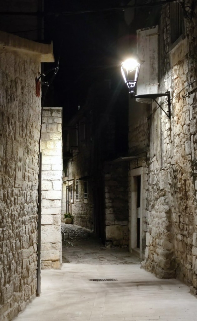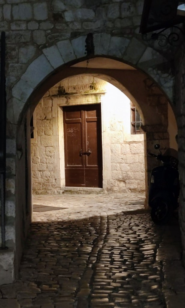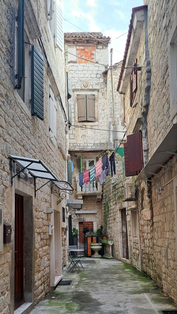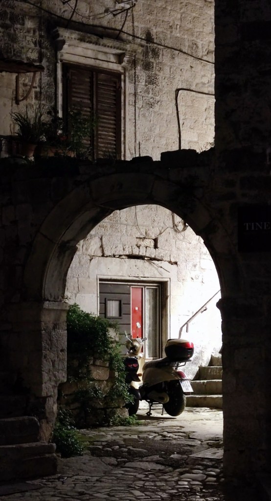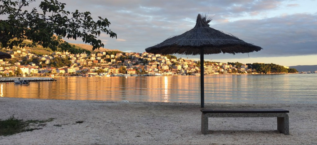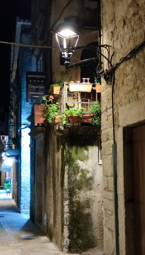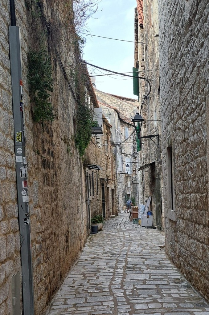 För vår del blev det en mjukstart när vi vände pilotstolarna framåt, endast 30 km. Vackra staden Trogir ville vi gärna uppleva igen. Vi hade fått tips om en ganska ny parkering som ligger väldigt centralt. Parkeringen är en inhägnad grusplan med bom och kostar 20 € för en övernattning, vilket det var värt, tycker vi.