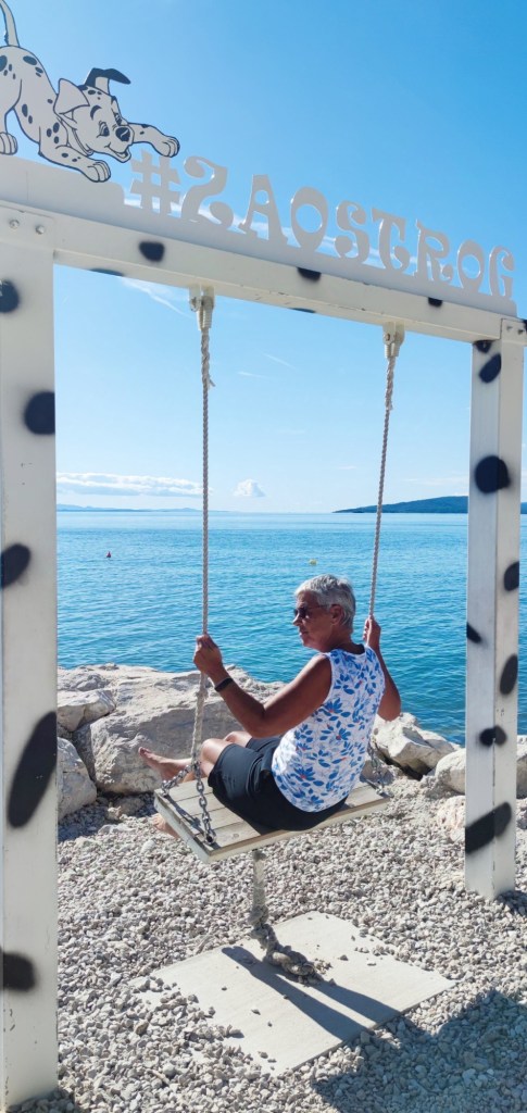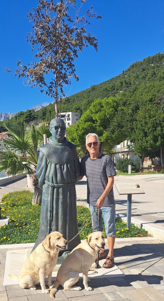 Dagen efter rullade vi vidare norrut på kustvägen och lagom till lunchtid nådde vi Zaostrog. Det som vi fastnade för senast vi var här är de vit-svart-prickiga busskurerna med Dalmatiner hundar på. Hundrasen har nämligen sitt ursprung härifrån regionen Dalmatien.
