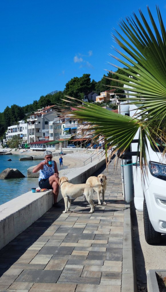 Från denna idyll tog vi oss tillbaka till Stobreč Camping, samma som vi lämnade för ungefär en vecka sen. Även denna denna gång var det fullbelagt så första natten fick vi stå i tältzonen. Dagen efter kunde vi flytta till en plats nära havet och hundbeachen och tagit ”semester på semestern” och bara slappat.