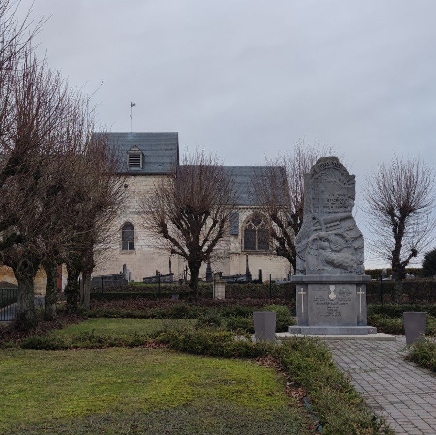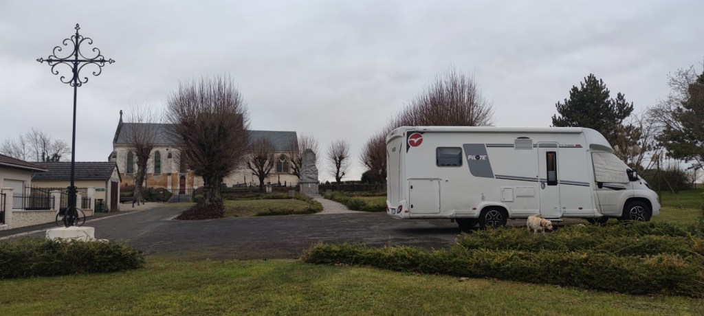 Natten tillbringade vi utanför kyrkan i den lilla franska byn Bergnicourt, några mil norr om Reims, och blev tidigt väckta av tuppen i huset bredvid.