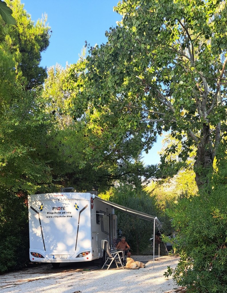 Men vår resa fortsatte, nu med riktning mot Stobreć camping strax söder om Split. Den campingen har vi varit på tidigare och vet att den passar oss. Vi vet också att det oftast är fullbelagt så den här gången tog det säkra före det osäkra och försökte reservera en plats. Det var dock inte helt lätt, de ville nämligen ha en depositionsavgift. Men att överföra pengar från vår bank till en utländsk bank är inte möjligt via en mobil. Till slut, efter flera mail, löste det sig och de reserverade en plats ändå. För oss visade det sig vara tur.