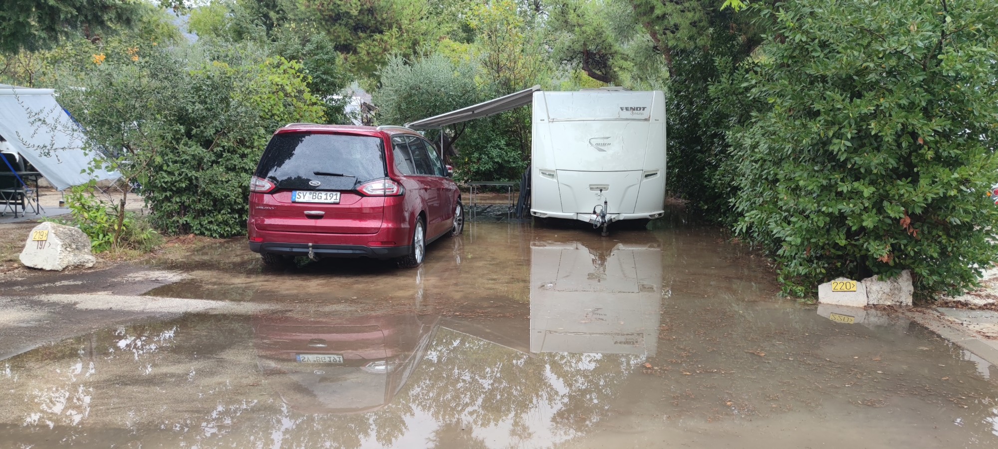 På Stobreć camping var det nämligen helt fullt, på parkeringen vid receptionen stod 8 husbilar den natten och väntade på plats. Och så har det varit varje kväll den här veckan.